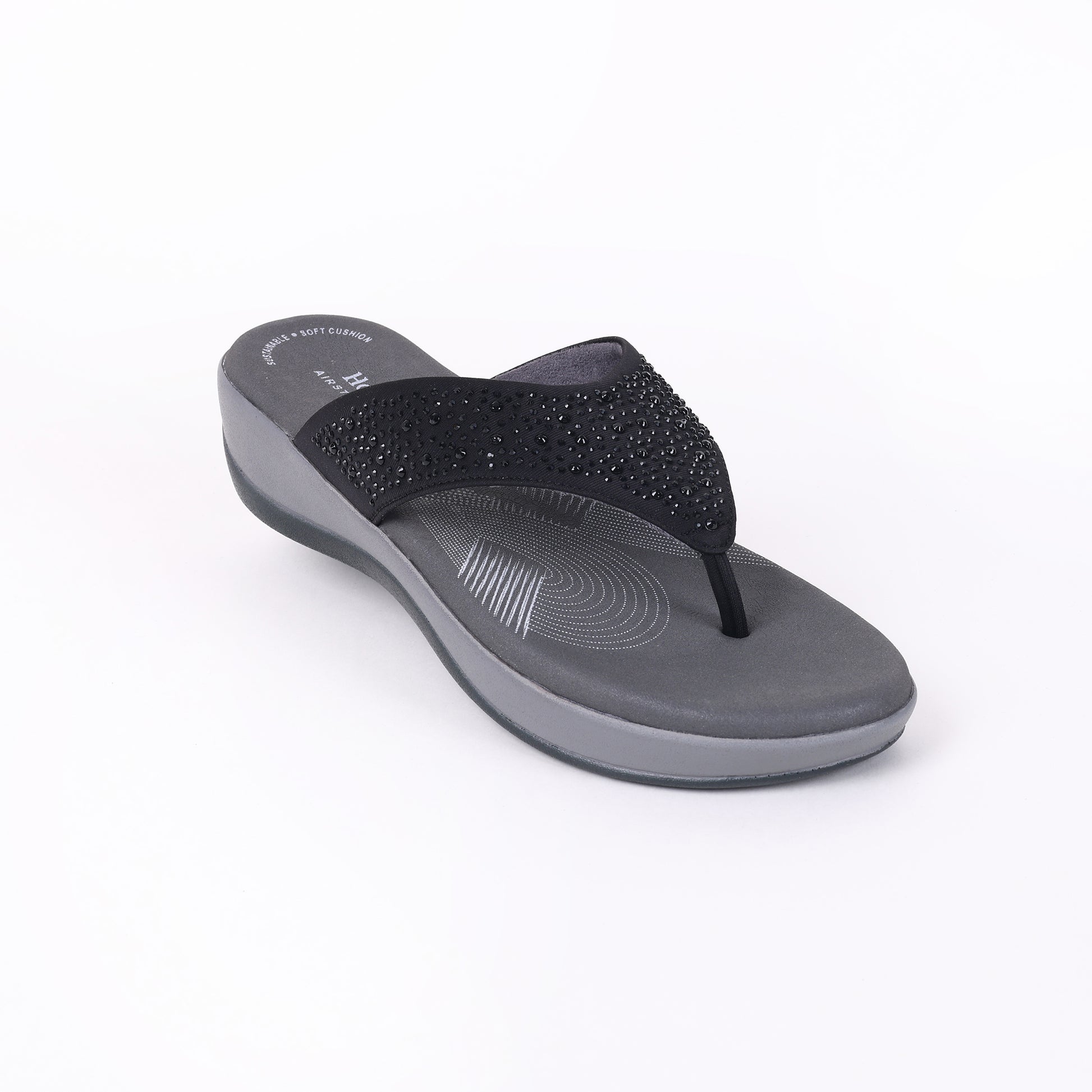 The medically inspired footbed promotes proper alignment, with a deep heel cup for added stability. Crafted with durable materials, Harriet features a textured footbed for enhanced grip and longevity. The Hooves Shock Absorption Footbed minimizes fatigue by absorbing impact, offering cloud-like comfort with every step. Finished with radiant stone accents, Harriet is the perfect combination of sophistication and function.